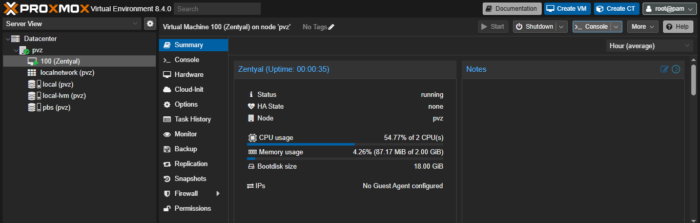 · Node: Pilih Node tempat VM/CT berjalan (misalnya pvz)