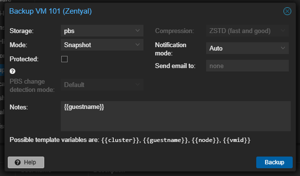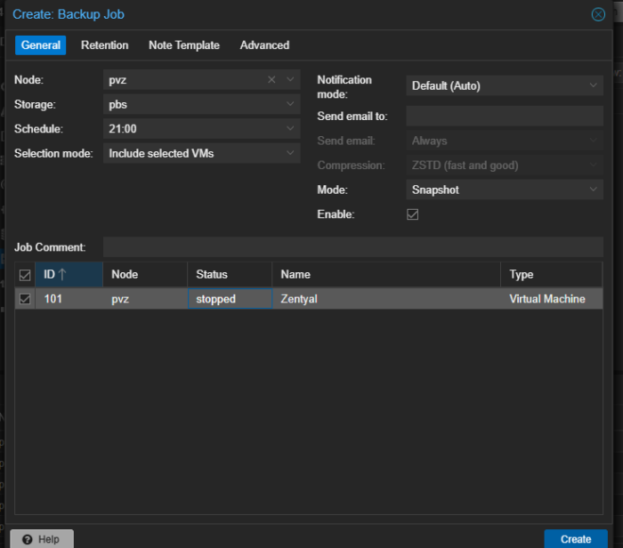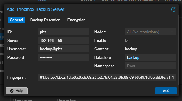 · Datastore: Nama datastore yang sudah dibuat di PBS (Misalnya backup)