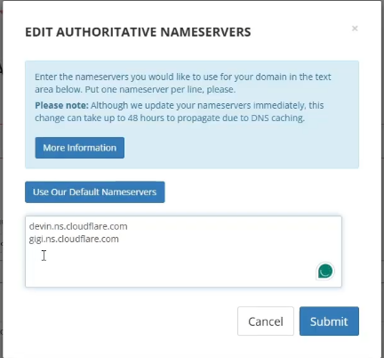 - Jangan menambahkan lebih dari dua nameserver Cloudflare.