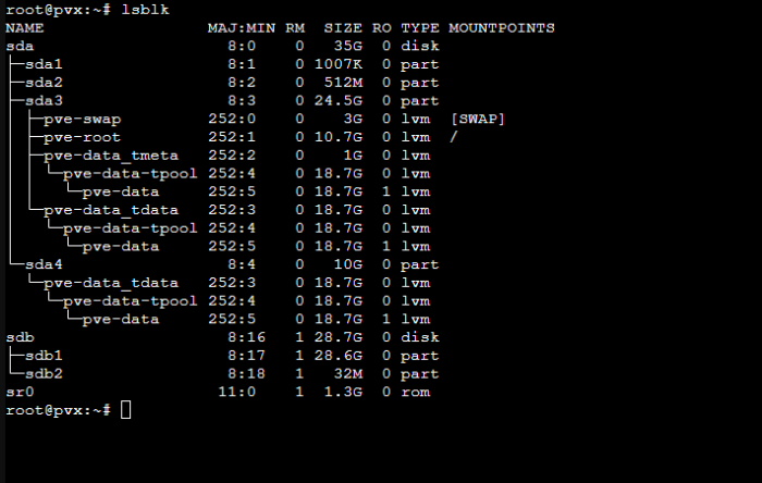 Untuk verifikasi, masukkan perintah “lsblk”.