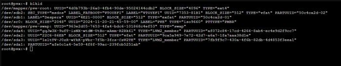 2.  Untuk memastikan detail perangkat dan file system, jalankan perintah “blkid”.