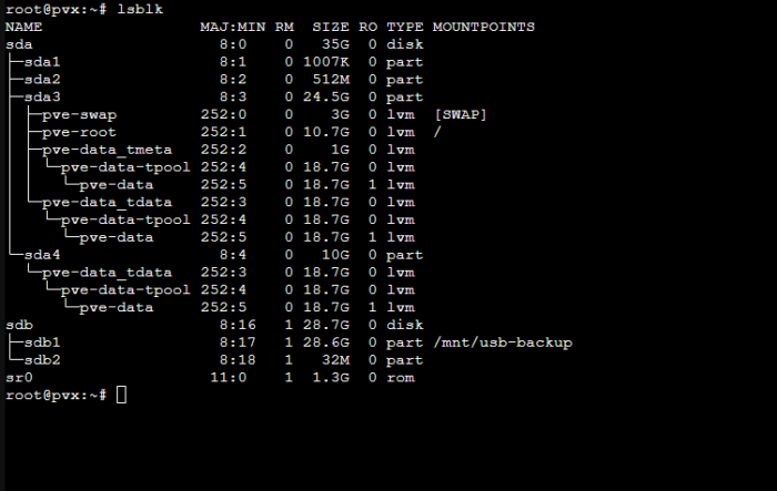 Setelah USB drive dicolokkan ke server Proxmox, langkah pertama adalah memastikan sistem mengenalinya.