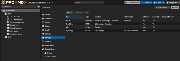 Agar USB drive bisa digunakan oleh Proxmox, storage harus didaftarkan secara manual.